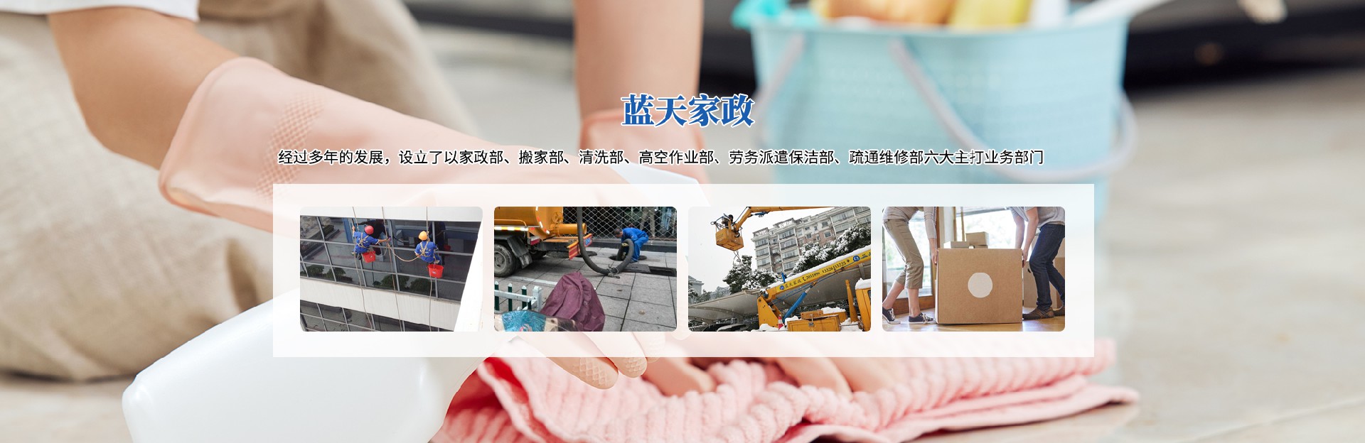 湖州藍天家政綜合服務(wù)有限公司創(chuàng)業(yè)于1999年2月,現(xiàn)已發(fā)展成為湖州地區(qū)家政清洗行業(yè)龍頭企業(yè)之一。2012年至2015年間先后榮獲全國家庭服務(wù)業(yè)千戶百強企業(yè)、全國家政行業(yè)質(zhì)量信譽AAA單位、浙江省公眾滿意質(zhì)量誠信雙優(yōu)單位、誠信服務(wù)優(yōu)秀單位、優(yōu)秀文明規(guī)范企業(yè)等特殊榮譽,也是浙江省家庭服務(wù)業(yè)協(xié)會理事單位、浙江省清洗保潔行業(yè)協(xié)會會員單位、湖州市家政服務(wù)業(yè)協(xié)會副會長單位。藍天經(jīng)過十六年的發(fā)展,設(shè)立了以家政部、搬家部、清洗部、高空作業(yè)部、勞務(wù)派遣保潔部、疏通維修部六大主打業(yè)務(wù)部門,常年提供湖州管道疏通,湖州家政公司,湖州保潔公司,湖州搬家等服務(wù),為湖州各單位后勤和...【查看更多】
